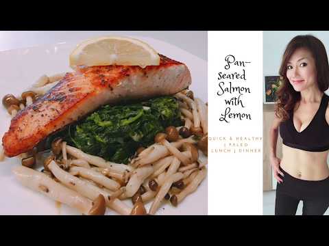 Discover the best audio quality : Pan Seared Salmon With Lemon, Sautéed Mushrooms & Spinach | Paleo | Keto | Paleo Sauteed Mushrooms