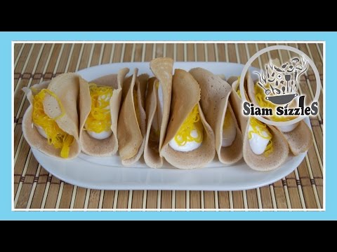 Thai Crepe Batter Recipe }}- These crepes look a bit like tacos and are a tasty and popular street food dessert in Thailand. We have stuffed ours with whipped cream and Foi Thong! For full ...