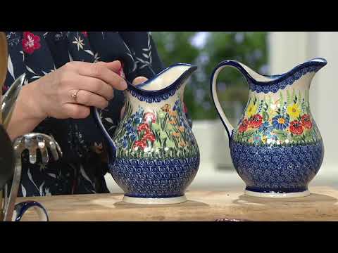 Lidia's Polish Pottery Hand-Painted 1 Liter Pitcher on QVC - 1 Liter Pitcher - For More Information or to Buy: https://qvc.co/2varvwT Lidia's Polish Pottery Hand-Painted 1 Liter Pitcher Use this bright, exquisite pitcher for serving homemade ...